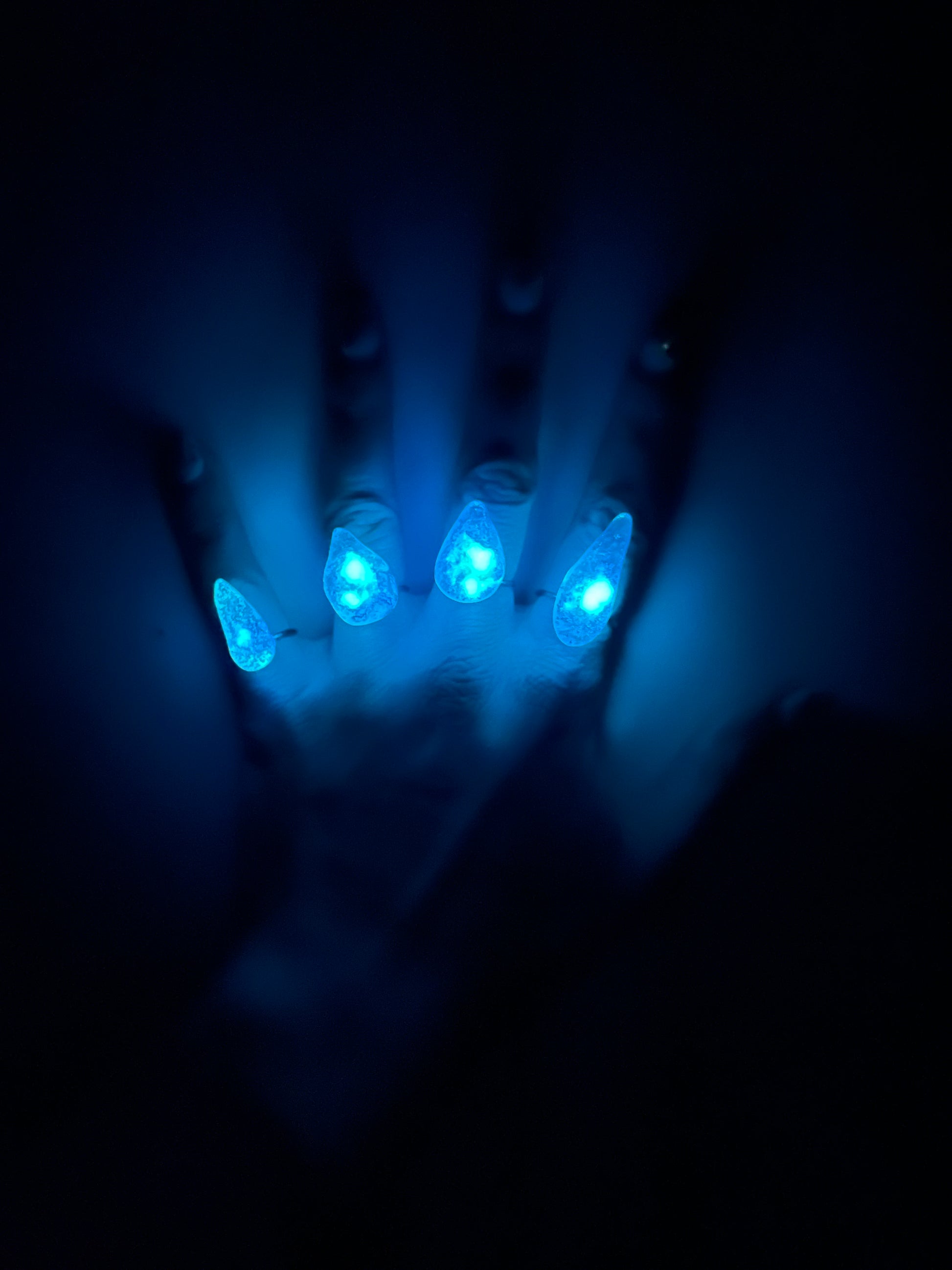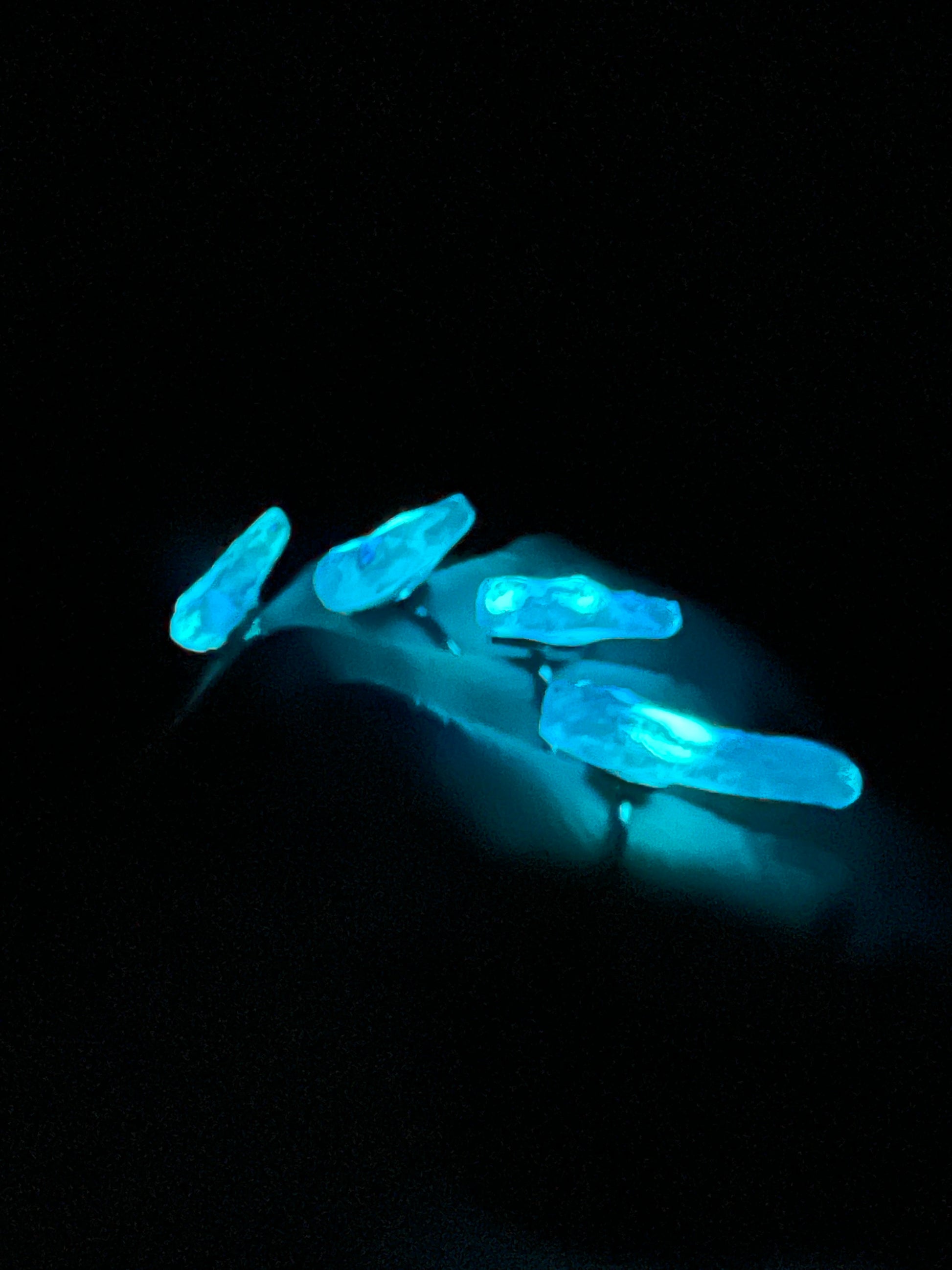 Anelli grigio fluorescenti al buio.